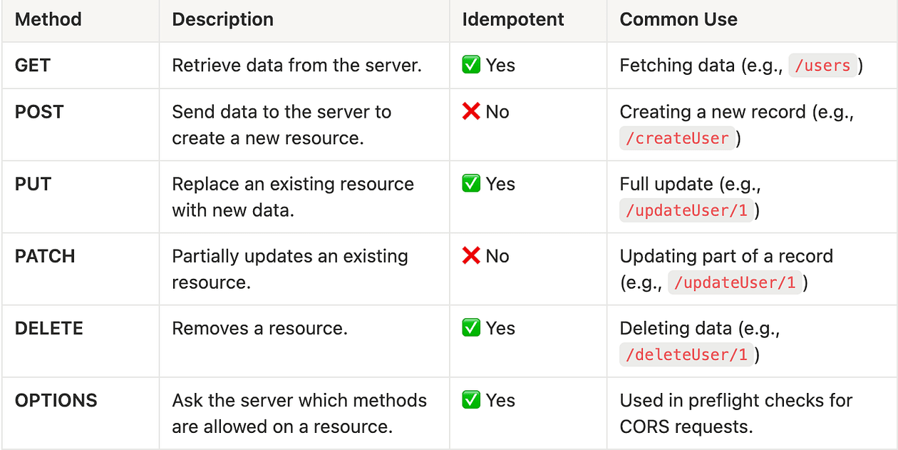 - POST /users/123 -> When u do it once, it creates a new resource once, but when you do it again and again, it keeps creating a new resource every time. Hence, it is not idempotent.