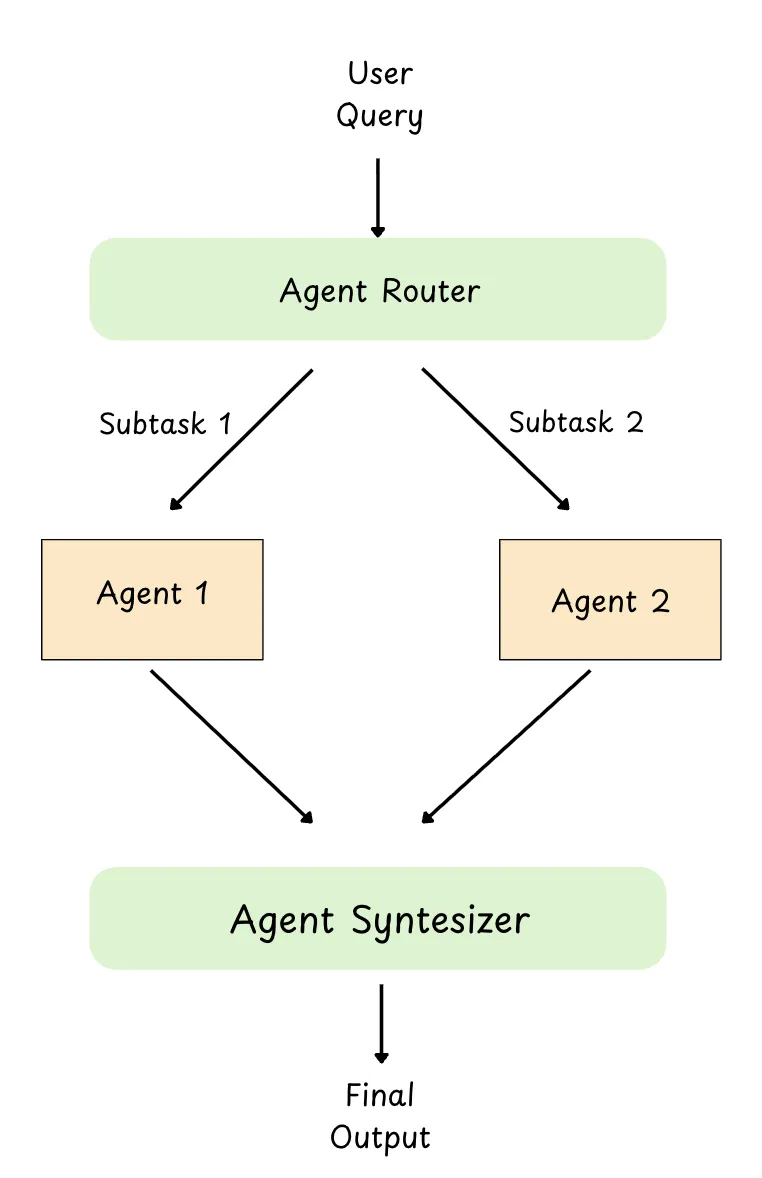 The router’s job is simple: it reads the user request, picks the best agent, and forwards the task to that agent.